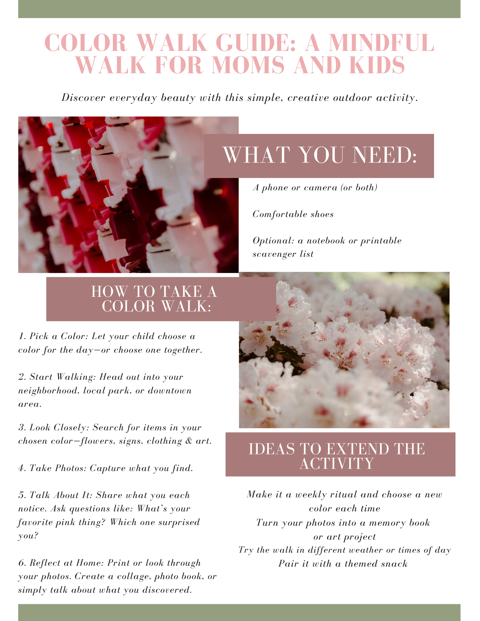 P.S. If you’re looking for a creative, low-pressure way to spend time with your kids (or simply reset your own mindset), try a color walk. Choose a color, head outside, and see what you notice. The world has more to offer than we sometimes allow ourselves to see.